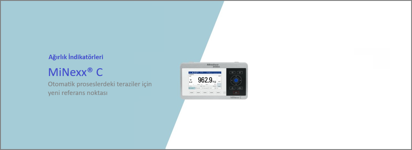 Endüstriyel Tartım Verimliliği Yeniden Tanımlandı: MiNexx® C Ağırlık Göstergesi MiNexx® C ağırlık göstergesi endüstriyel tartımda yeni bir çağ başlatıyor ve yenilikçi, sadeleştirilmiş bir kullanıcı deneyimi sunuyor. Red Dot Tasarım Ödülü kazanan yeni Blue HMI arayüzü, kolay anlaşılabilir olması ile kullanım kolaylığı sağlıyor ve kullanıcı dostu yapısıyla öne çıkıyor. Modern üretim ortamları için tasarlanan cihaz; Bluetooth, USB, Ethernet bağlantılarının yanı sıra entegre OPC UA ve web sunucusu işlevleri gibi kapsamlı bağlantı seçenekleri sunuyor. Bu gelişmiş teknolojiler, Minebea Intec’in simgesi haline gelen hassasiyet ve güvenilirlikle birleşerek süreçlerinizde üstün güvenlik ve sürekli performans sağlıyor.