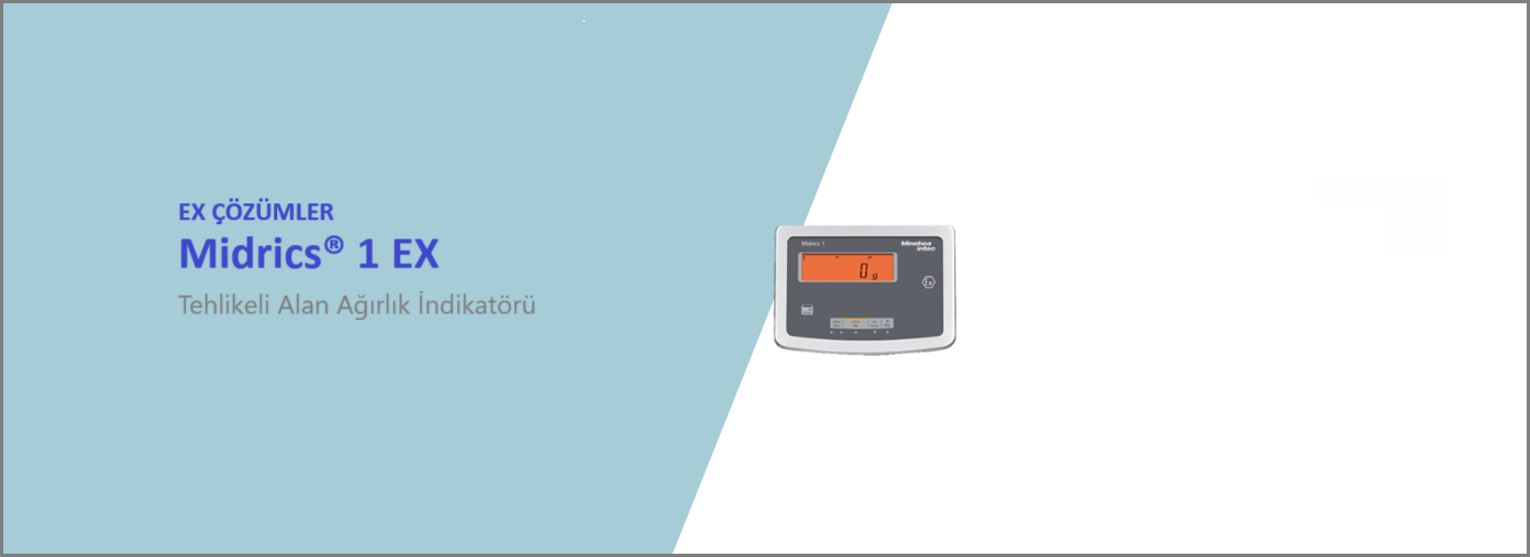 Midrics® 1 EX tartım indikatörü bir analog platform ile kombine edilerek tartım sonuçlarının koly ve hızlı alınmasını sağlayan mükemmel bir çözümdür. Dayanıklı tasarımı ve IP65 koruma ile tüm yönlerden toz ve su girişine karşı tam korumalıdır. ATEX Zone 1/21, IECEx Zone 1/21 ve FM/CSA Class I,II,III Div. 1 (USA/Canada) belgelendirmesi ile Midrics® 1 EX tarım indikatörü potansiyel patlama atmosfrlerinde kullanım için uygundur.